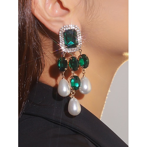 orecchini pendenti da donna con cristalli e perle - orecchini pendenti glamour con strass per feste, matrimoni o eventi serali