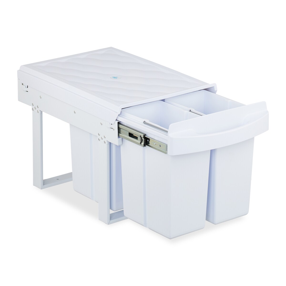 Relaxdays Einbaumülleimer, 4 Fächer, 4x 8 l, HxBxT: 34,6 x 34 x 51,8 cm, ausziehbar, Müllsystem Unterschrank, weiß