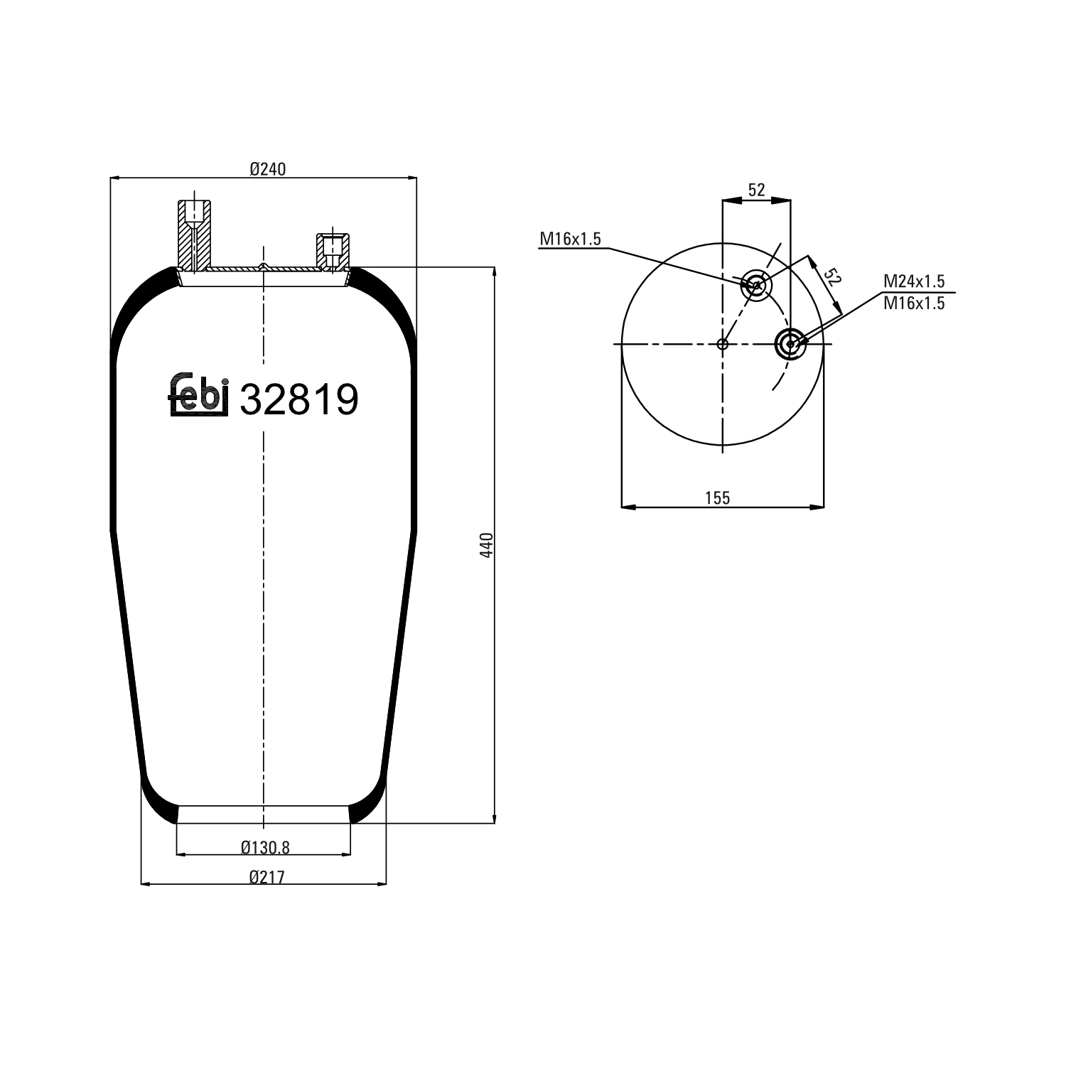 FEBI BILSTEIN Federbalg, Luftfederung 32819 Universal hinten rechts links ohne Kolben 155mm für MERCEDES-BENZ 9423280501 A9423280101 A9423280501