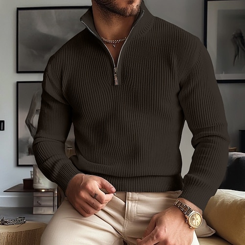 Per uomo Felpa Maglione con zip Maglioni con zip a un quarto A coste Grosso Maglia Classico Mezza Zip Tinta unica Colletto alla coreana Elegante Vintage Formale Interni Abbigliamento Rimborsate