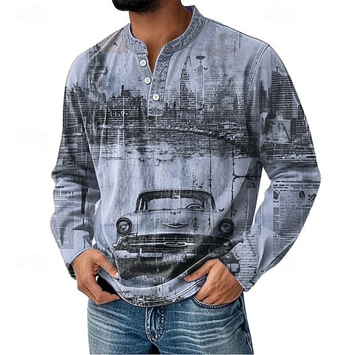 Per uomo Grafico Auto Maglia Henley Manica Lunga Vintage Moda Carino Casuale Ferie Uscire Primavera Autunno Interstagionale Blu Grigio Viola Cachi Henley Maglietta Henley