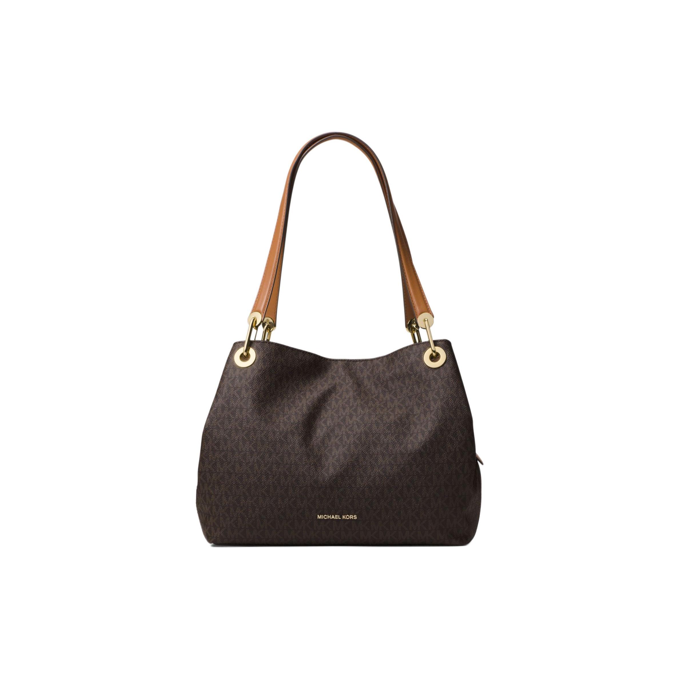 Michael Kors Mk Raven Klassisk Monogram Vintage Färgblock Belagd Twill Tote Axelväska Damhandväskor Brun 30H6GRXE3V-200