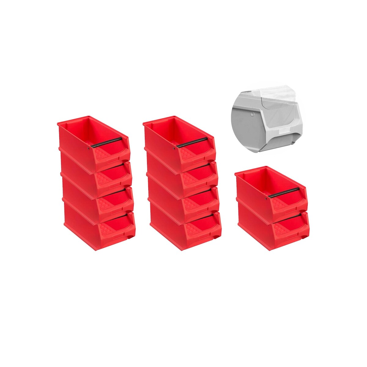 PROREGAL 10x Rote Sichtlagerbox 4.1 mit Griffstange & Abdeckung | HxBxT 15x20x35cm | 7,2 Liter | Sichtlagerbehälter, Sichtlagerkasten