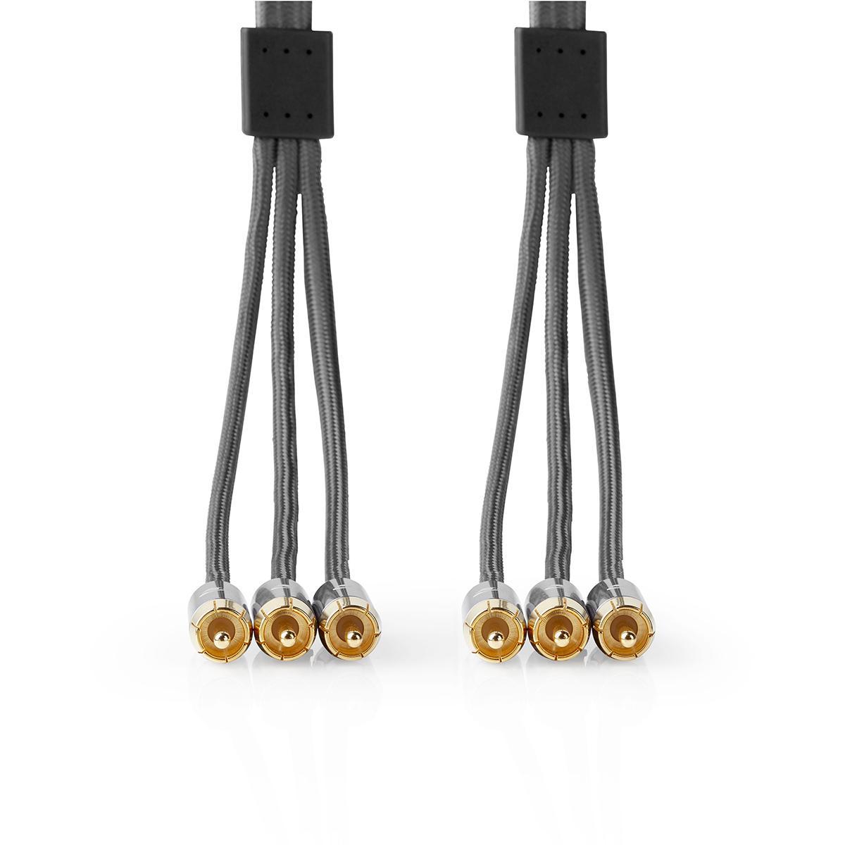 Nedis Composite Video Cable - 3x RCA Male - 3x RCA Male - Gold Plated - 480p - 2.00 m - Round - Cotton - Anthracite / Gun Metal Grey - Cover Window Box