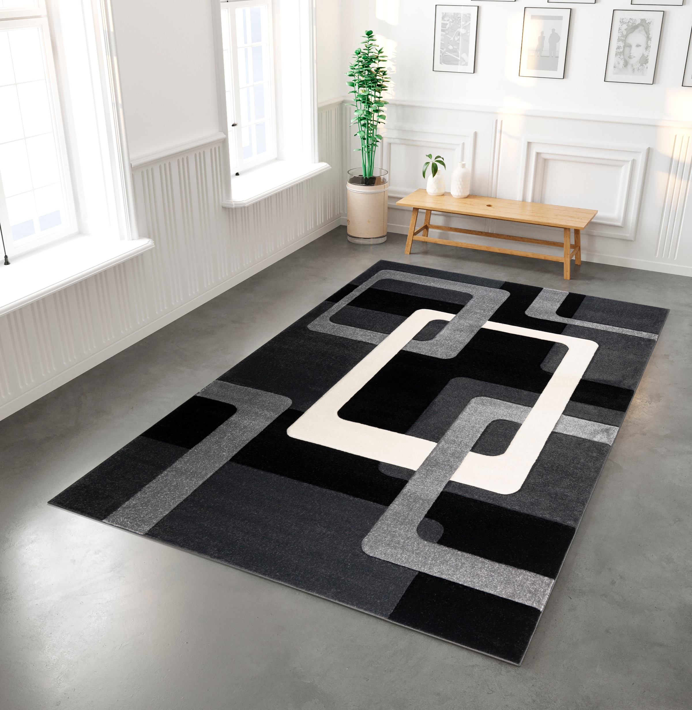 Teppich MY HOME "Maxim" Gr. 8, schwarz, B:280cm H:13mm L:390cm, Kunstfaser, Teppiche, Hoch-Tief-Effekt, Kurzflor, 3D-Design, Kundenliebling