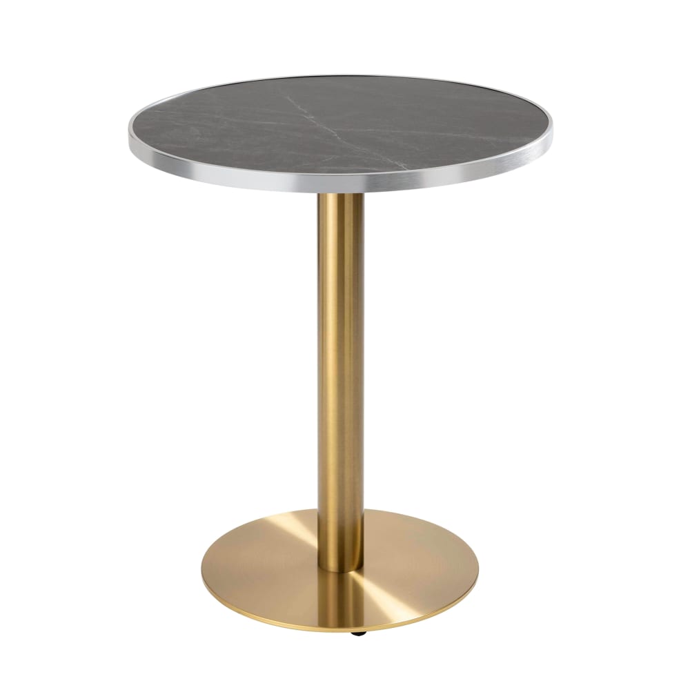 Table à manger ronde 60 cm plateau marbre noir/argent et pied doré