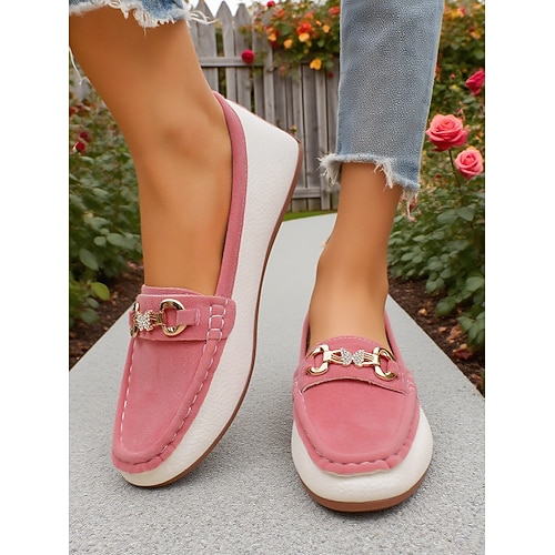 scarpe basse slip-on classiche da donna in finta pelle scamosciata con punta quadrata, per tutti i giorni, ufficio e viaggi