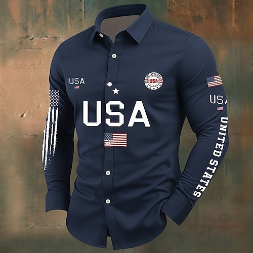 Per uomo Bandiera degli Stati Uniti Patriottico 250° anniversario degli Stati Uniti Camicia Camicia con Bottoni Manica Lunga Vintage Retrò Ferie Casual Quotidiano Primavera Autunno Collo ripiegato