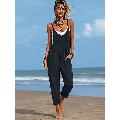 Per donna Normale Tuta Attivo Tinta unica Senza Maniche Scollo a V Tasca Quotidiano Spiaggia Vestibilità comoda Nero Vino Viola Estate
