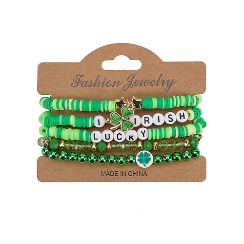 set di braccialetti di perline per il giorno di San Patrizio da donna, braccialetti con ciondoli in resina e lega, gioielli con lettere di trifoglio irlandese multi-stile per donna, perfetti per sfilate di festa, feste e abbigliamento festivo