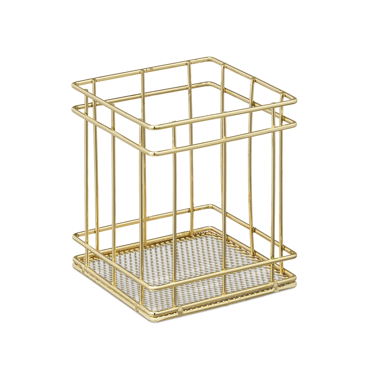 Relaxdays Stiftehalter eckig, modern, Pinselhalter Kosmetik, Draht, Stiftebecher Schreibtisch, HBT: 10 x 9 x 9 cm, gold