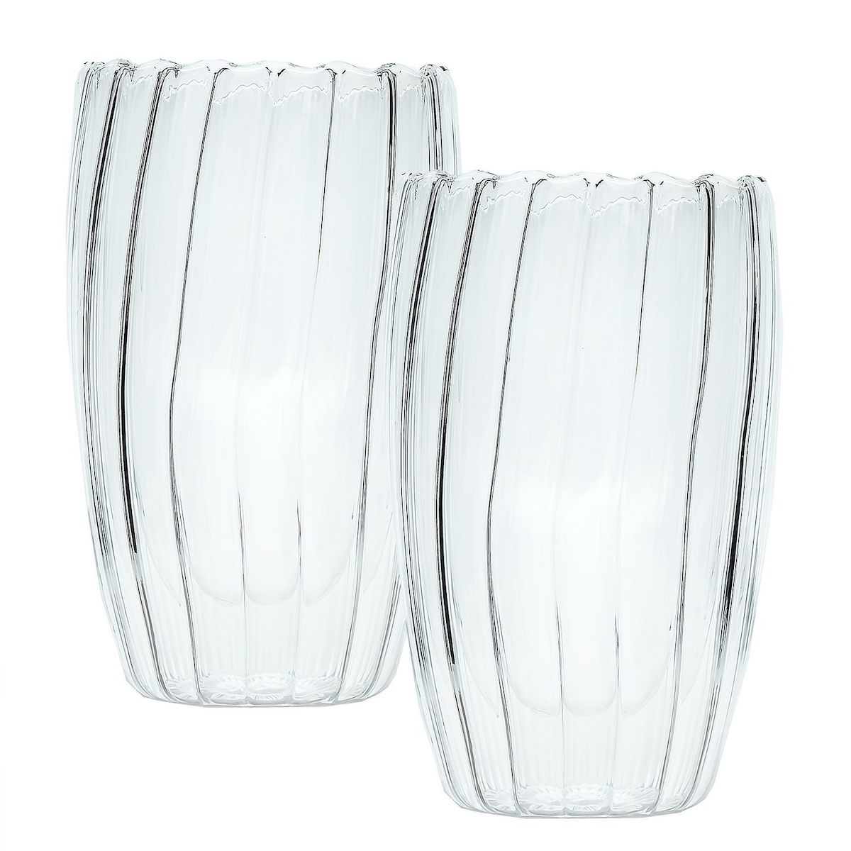 Intirilife 2x Doppelwandiges Thermo Glas - Striped Style - 350ml - Mundgeblasen isoliert für Latte Macchiato, als Teeglas oder Kaffeeglas mit Henkel