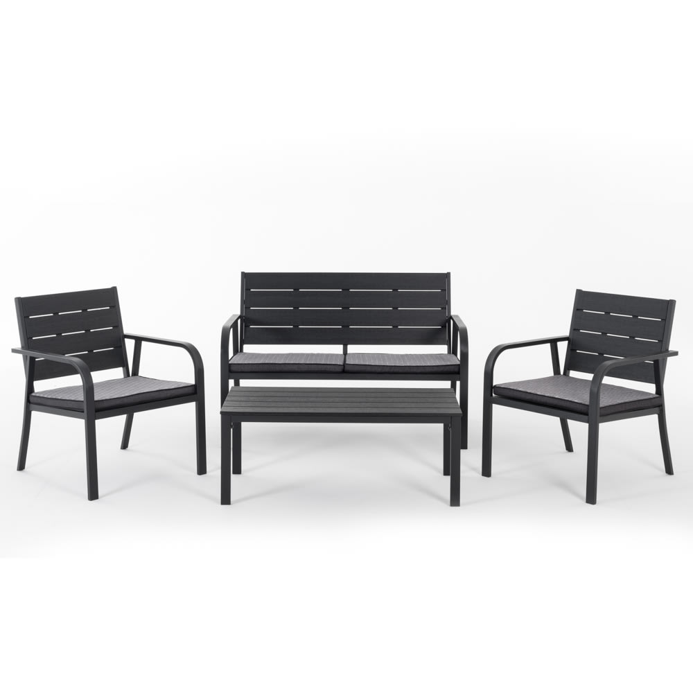 Set da esterno 4 posti in acciaio e polietilene effetto legno