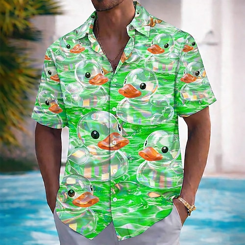 Per uomo Paperella di gomma Piscina Camicia hawaiana estiva Camicia con Bottoni Camicia Aloha Manica Corta Hawaiano Vacanza Abbigliamento mare Estate Primavera Collo ripiegato Stampa 3D camicie con