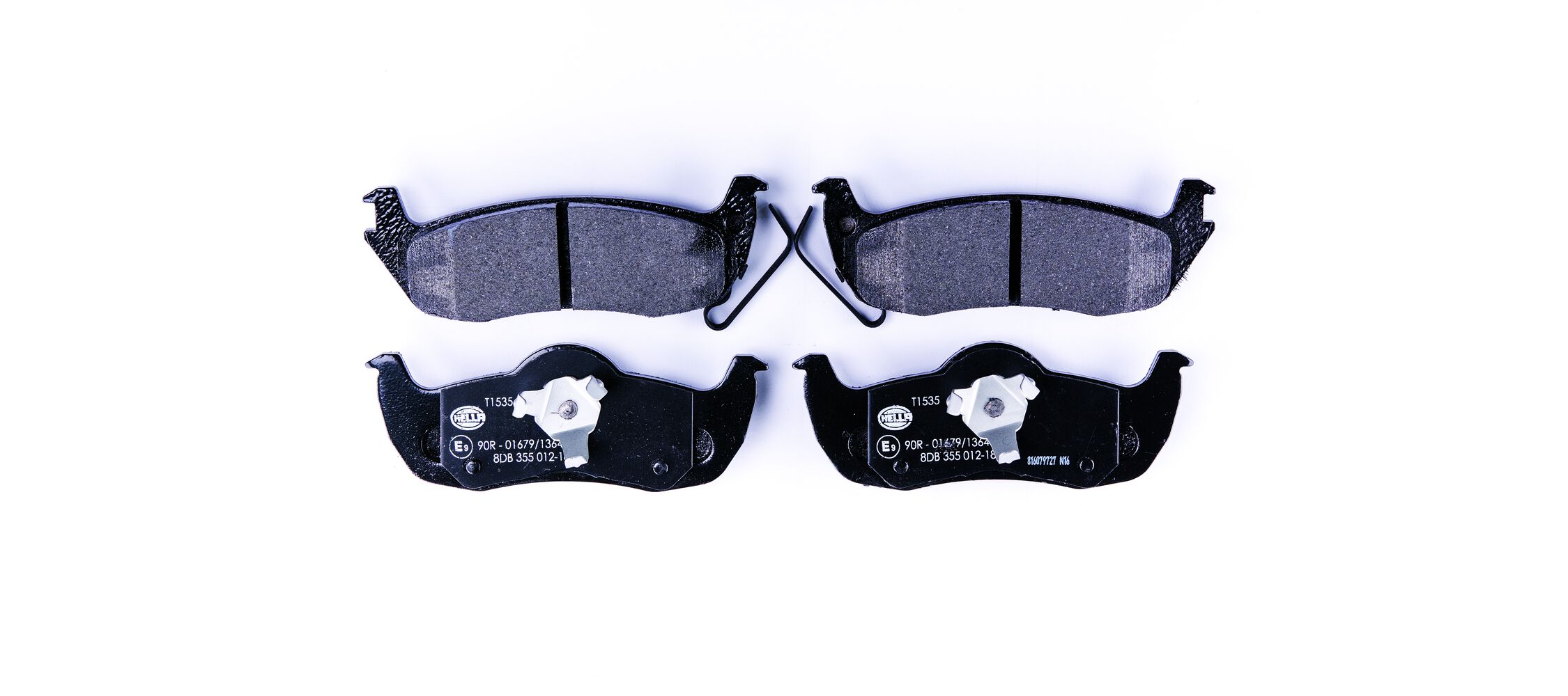 HELLA Bremsbelagsatz, Scheibenbremse 8DB 355 012-181 hinten rechts links für JEEP CHRYSLER V2010871 2AMV4871AA K05080871AB