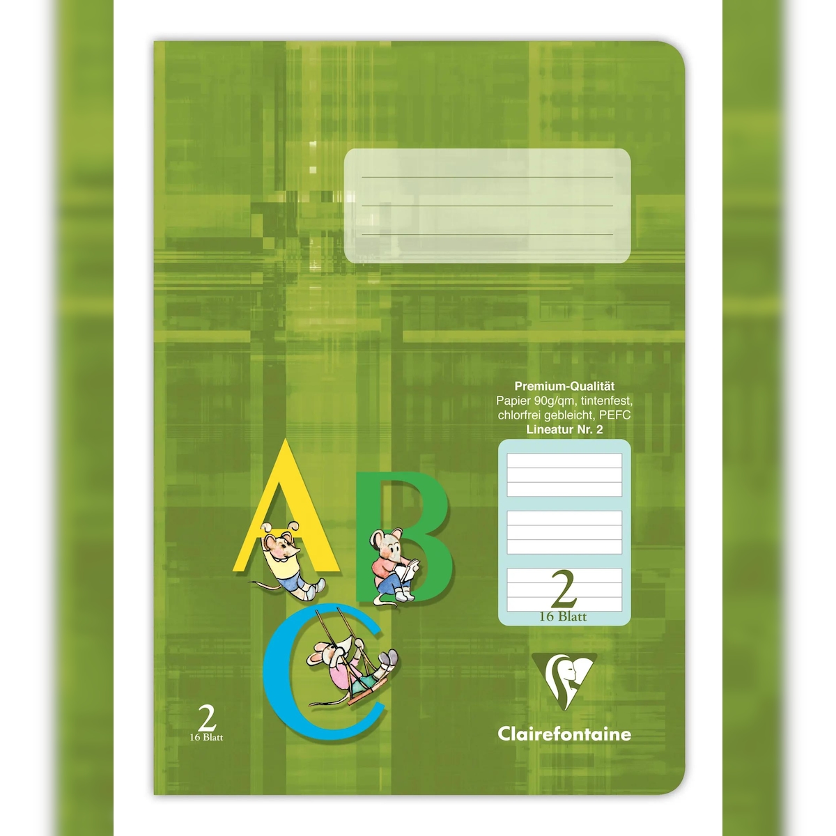 Clairefontaine 25x Schulheft Clairefontaine, DIN A5, 16 Blatt, 90g, grüne Lineatur 2 liniert für 2. Schuljahr - Khaki 331552C