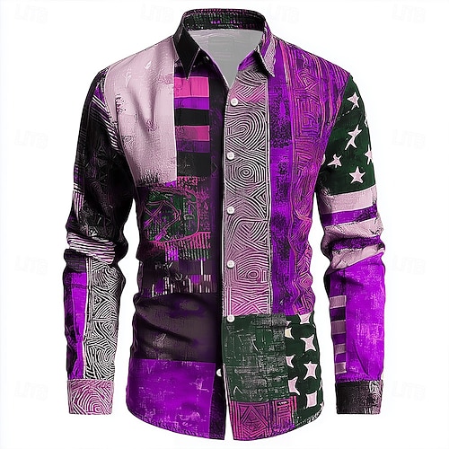 Per uomo Geometrico Blocco di colori Patchwork Camicia Camicia con Bottoni Manica Lunga Vintage Retrò All'aperto Quotidiano Abbigliamento casual alla moda Primavera Autunno Collo ripiegato Stampa 3D