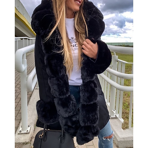 Per donna Cappotto Invernale Cappotto Cappotto in Pelliccia Sintetica Caldo Confortevole Tasca Bottoni Casual Blocco di colori Vacanza Streetwear Casuale Ferie Lungo Con Cappuccio Vestibilità regolare