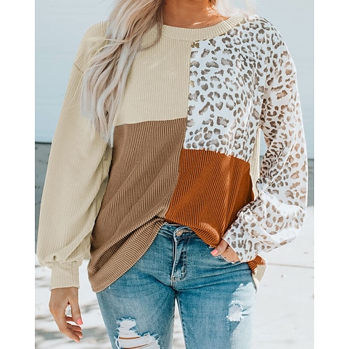 Per donna Blusa Leopardo Blocco di colori Vintage Elegante Manica Lunga Girocollo Top Regolari Quotidiano Ferie Uscire Patchwork Blu Cachi Albicocca Rosa Autunno Inverno