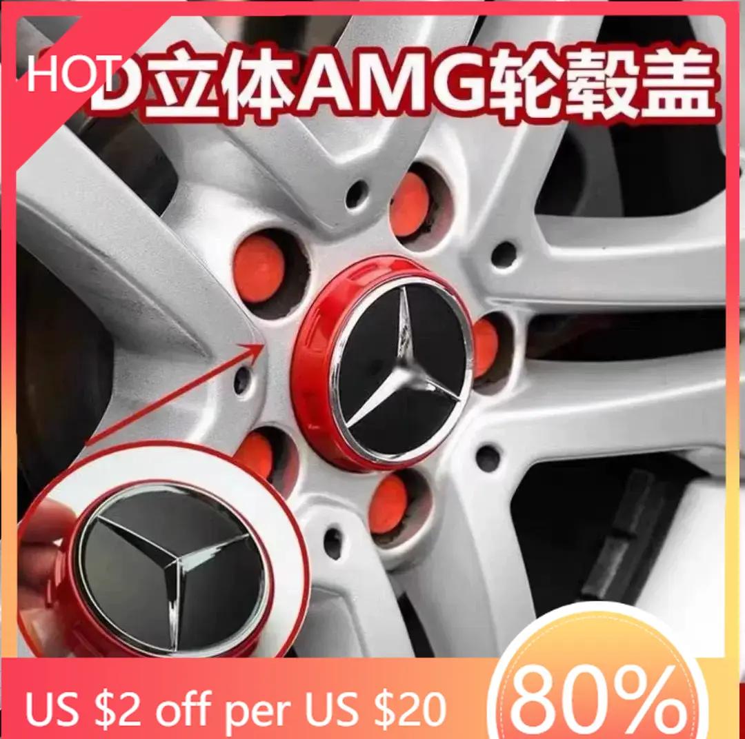 Nieuwe 2025 Hete 4 stuks 75 mm Zwart Rood Verhoogde Auto Styling Wielnaafdop Voor Mercedes Benz AMG A0004000900