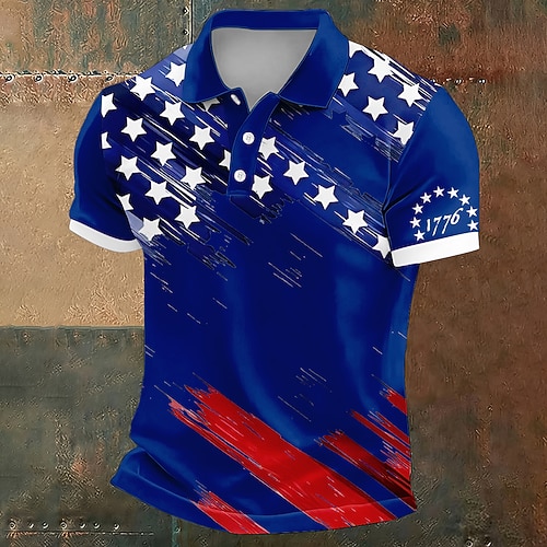 Giorno dell'Indipendenza Americana Per uomo Bandiera Americana Polo Manica Corta Magliette polo Bavero Casual Athleisure Abbigliamento quotidiano Abito da festa Stampa 3D Bottoni Primavera Blu Nero