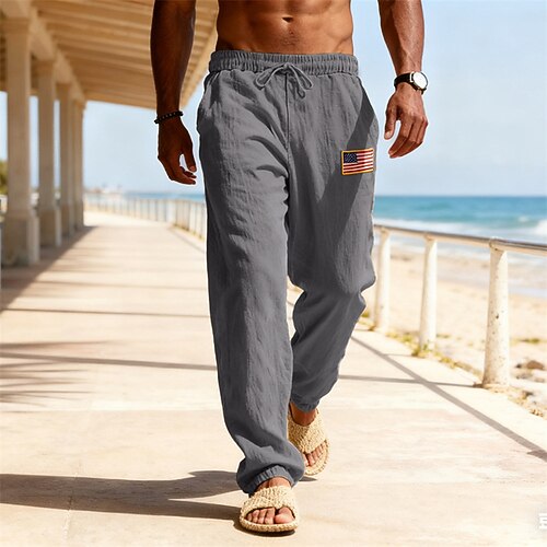 Per uomo Pantaloni di Lino Pantaloni Pantaloni Estivi Pantaloni da Spiaggia Coulisse Elastico in vita Bandiera Americana Comodità Traspirante All'aperto Quotidiano Ferie Vacanza Moda Verde militare