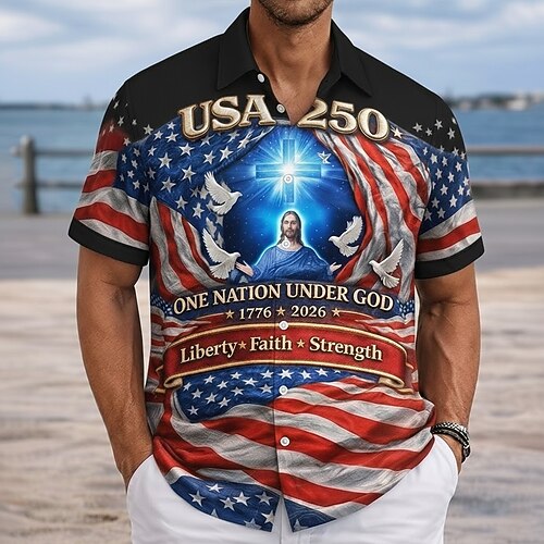 Per uomo Gesù Bandiera degli Stati Uniti 250° anniversario degli Stati Uniti Camicia Camicia con Bottoni Manica Corta Patriotico All'aperto Ferie Estate Primavera Collo ripiegato Stampa 3D camicie