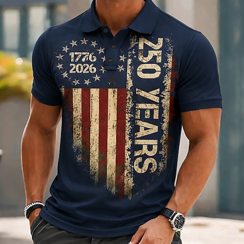 Stati Uniti America 250° anniversario Giorno dei Veterani Per uomo Bandiera Americana Polo Manica Corta Magliette polo Camicie con Colletto Casual Athleisure Bottoni Estate Primavera Blu Nero Rosso