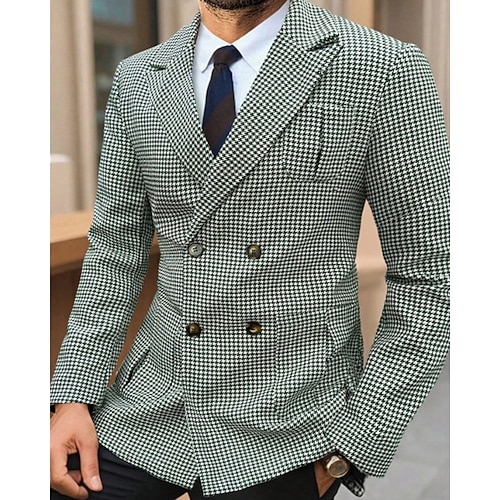 Per uomo Blazer Affari Cocktail party Ricevimento di matrimonio Moda Casual Primavera Autunno Poliestere Pied-de-poule Tasca Bottoni Confortevole Doppiopetto Giacca Verde