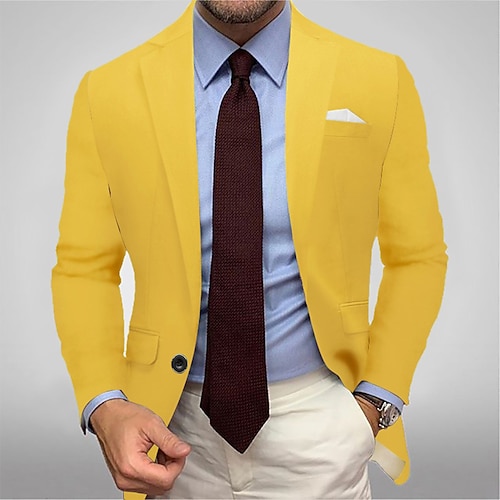 Per uomo Blazer Completi Affari Ricevimento di matrimonio Classico Senza Tempo Stile Semplice Primavera Autunno Poliestere Tinta unica Stile Formale Monopetto Un Bottone Giacca Nero Giallo Blu