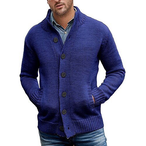 Per uomo Cardigan Maglione Corto Maglione a maglia A Coste Maglia Top Regolari Cardigan con Bottoni Tasca Semplice Collo alla coreana Moda Classico Vacanza Abbigliamento quotidiano Abbigliamento