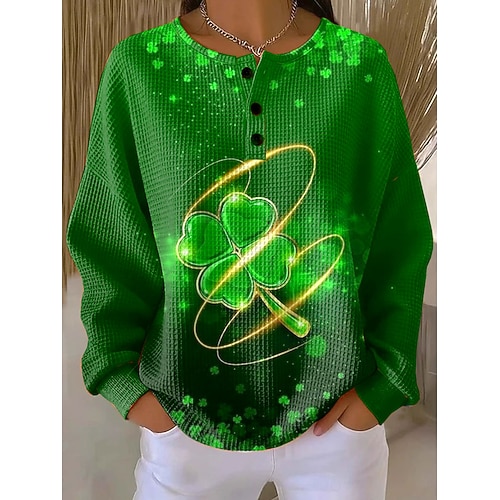 Felpa da donna di San Patrizio con grafica trifoglio calda classica casual a maniche lunghe colletto rotondo tops regolari casual street abbigliamento quotidiano stampa verde primavera