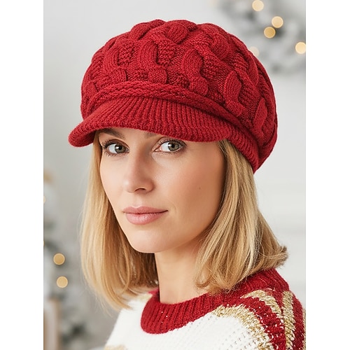 Cappello da donna in maglia acrilica con fodera in pile, vari colori, comodo ed elegante per le attività natalizie e invernali