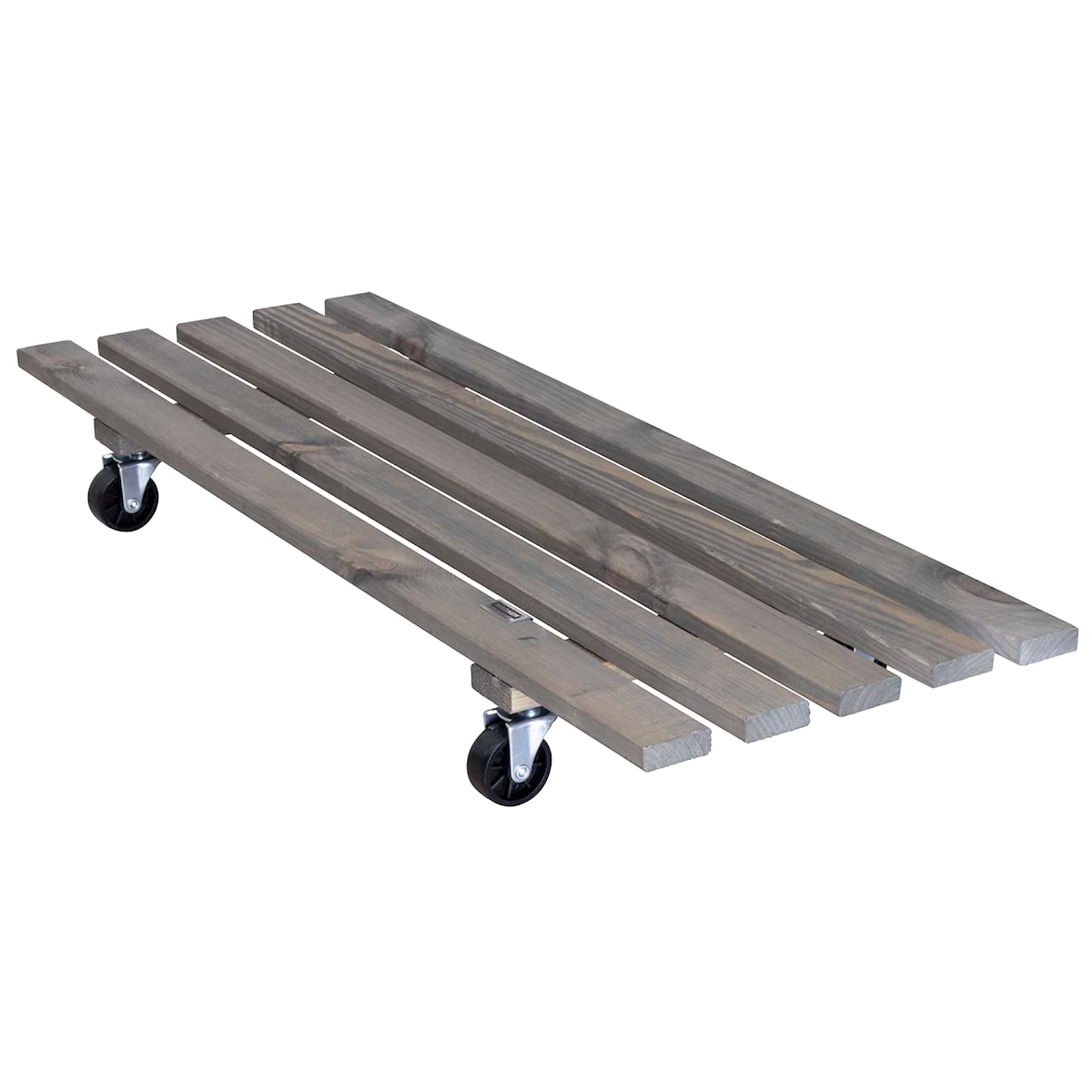WAGNER Pflanzenroller DOUBLE 79 x 29 x 8,5 cm außen & innen, Holz geriffelt, grau, Tragkraft 150 kg, EU Ware - 20087901