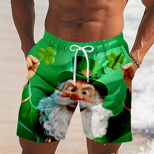 Festa di San Patrizio Per uomo Trifoglio folletto Costumi da bagno Pantaloncini da mare Pantaloncini da Surf Misura del girovita medio Moda Casual Feste Ferie Tasche Laterali fodera in rete Coulisse