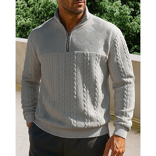 Per uomo Top casual Felpa lavorata a maglia Cerniera a un quarto Maglia a trecce Manica Lunga Top Athleisure Tinta unita Di tendenza Caldo All'aperto Viaggio Sportivo abbigliamento sportivo