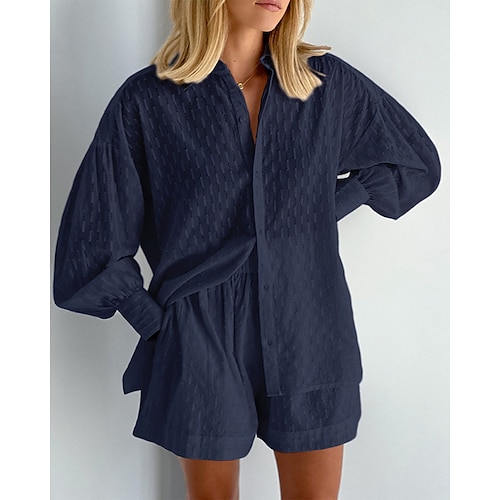 Per donna Attivo Moda Streetwear Set di Pantaloncini Bolero Top Manica Lunga Manica a Palloncino Colletto a Camicia Tinta unica Patchwork All'aperto Vacanza Quotidiano Nero Bianco Giallo Autunno