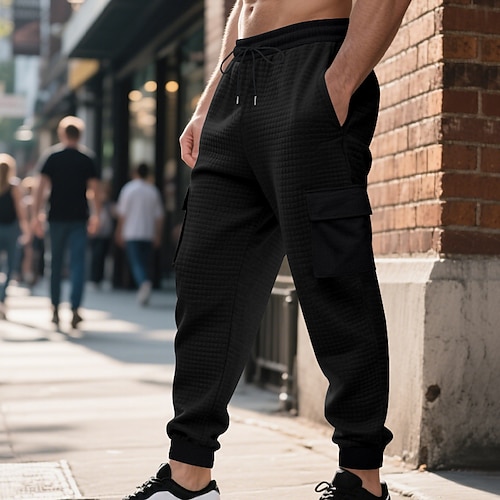 Per uomo Nido d'ape Pantaloni da tuta Joggers Pantaloni Pantaloni casual Coulisse Polsino elastico Tinta unica Comodità Lunghezza intera All'aperto Quotidiano Abbigliamento casual alla moda Moda Chic