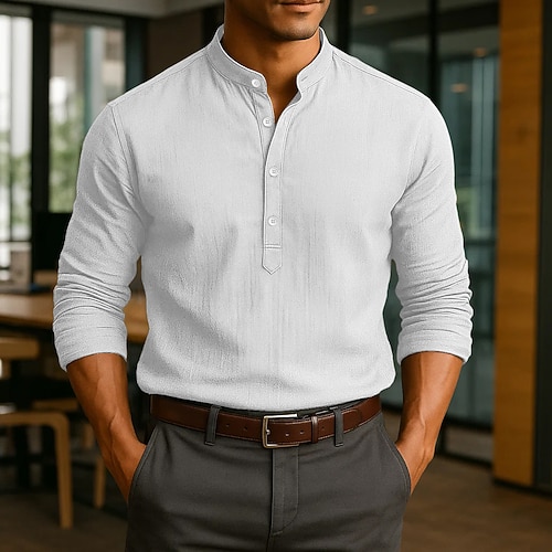 Per uomo Camicia Camicia popover Camicia Estiva Camicia casual Camicia con colletto alla coreana Nero Bianco Blu Manica Lunga Semplice Colletto Vacanza Quotidiano Abbigliamento Cotone Misto Cotone