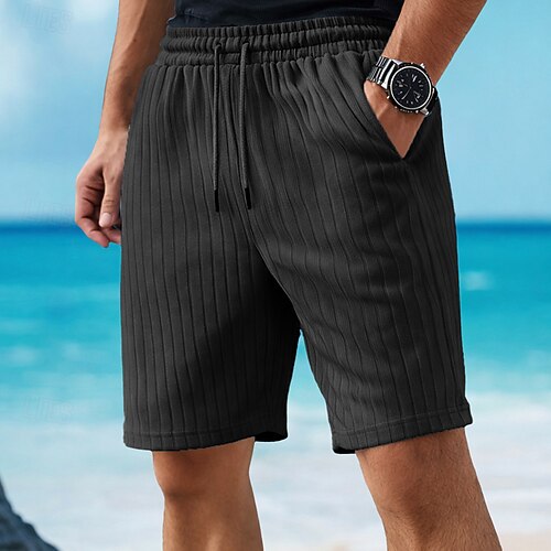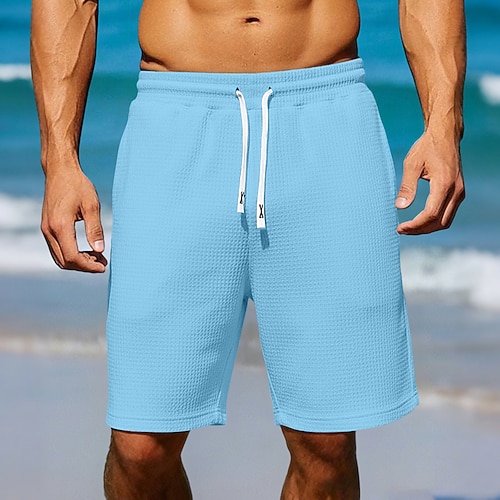 Per uomo Nido d'ape Shorts Pantaloncini Estivi Shorts da Spiaggia Coulisse Elastico in vita Tinta unica Comodità Lunghezza al ginocchio Quotidiano All'aperto Abbigliamento casual alla moda Vacanza