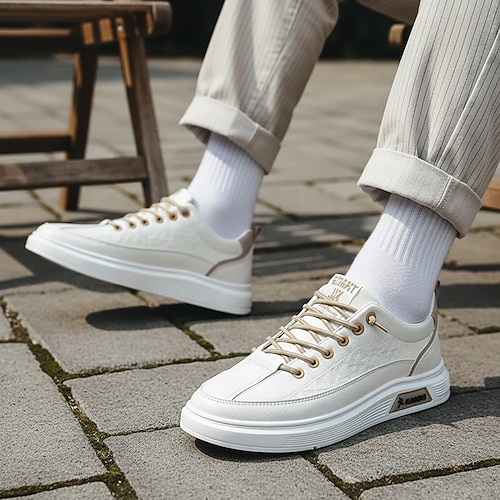 scarpe da ginnastica da uomo bianche e verdi, comode scarpe sportive con lacci per lo sport e l'abbigliamento casual