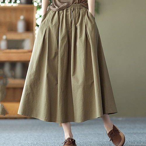 Per donna Essenziale Casual Midi Vita Alta Gonne Tinta unita Tasca Casual Quotidiano Weekend Nero Bianco Verde Cachi Estate Cotone Lino