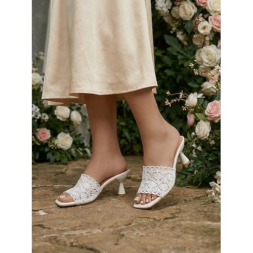 Per donna Matrimonio in giardino Matrimonio Stiletto Punta quadrata Moda Pizzo Mocassino Bianco