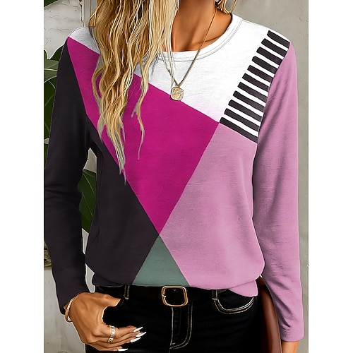 Per donna Maglietta Grafico Geometrico Astratto Moda Elegante Classico Manica Lunga Girocollo Top Regolari Quotidiano Stampato Blu Rosso Estate Primavera