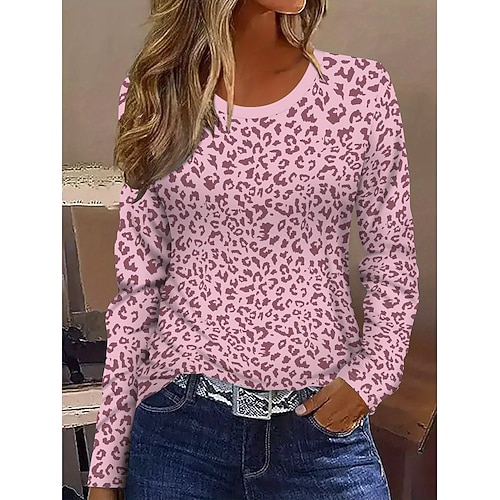 Per donna Maglietta Grafico Geometrico A righe Vintage Elegante Classico Manica Lunga Girocollo Top Regolari Quotidiano Stampato Rosa Estate Primavera Autunno