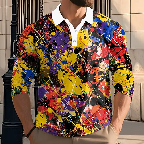 Per uomo Inchiostro splash Polo Manica Lunga Magliette polo Bavero Casual Streetwear Athleisure Abbigliamento quotidiano Stampa 3D Bottoni Primavera Autunno Inverno Giallo Blu Viola