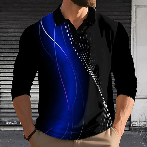 Per uomo Geometrico Linea Polo Manica Lunga Magliette polo Bavero Business Casual Athleisure Abbigliamento quotidiano Stampa 3D Bottoni Primavera Autunno Inverno Blu Viola Arancione