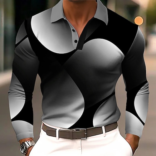 Per uomo Geometrico Linea Polo Manica Lunga Magliette polo Bavero Business Casual Athleisure Abbigliamento quotidiano Stampa 3D Bottoni Primavera Autunno Inverno Rosso Blu Verde