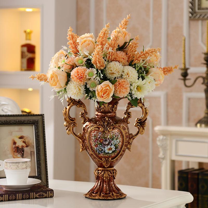 Europe Vintage Resin Vase Flower Arrangement Ornaments Home Living Room Desk Furnishing Decoration Cafe Office Accessories Items