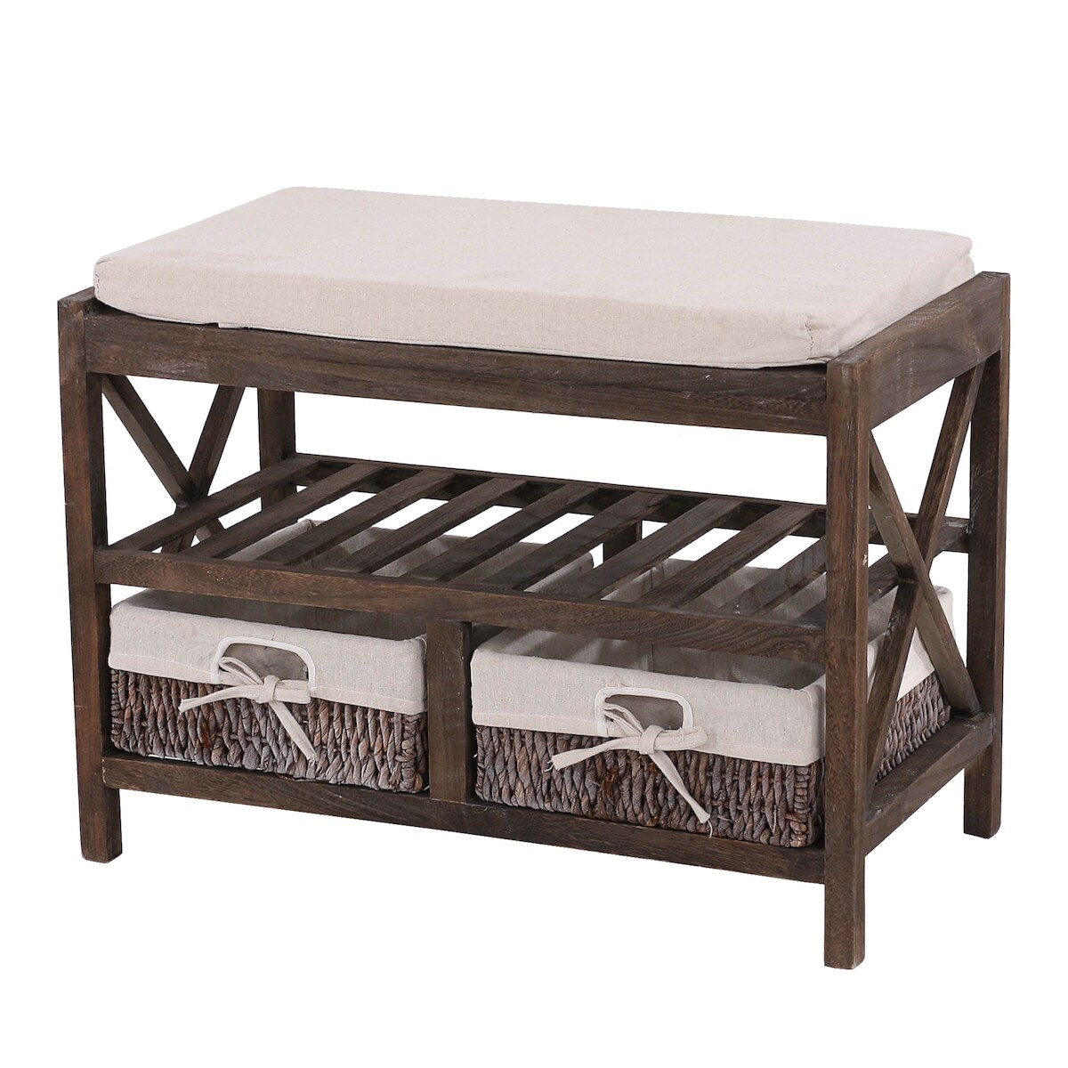 Mendler Schuhregal HWC-C48, Sitzbank Schuhablage, Shabby-Look Vintage 45x65x34cm ~ braun